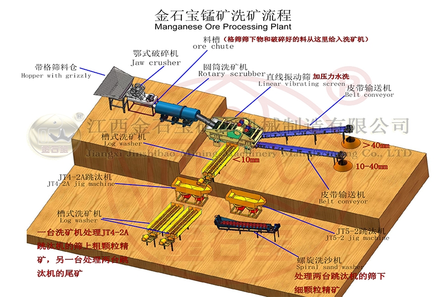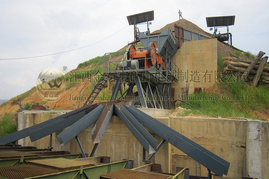 猛矿重选案例:设备有鄂破-圆筒洗矿机-直线振动筛-槽式洗矿机-跳汰机-螺旋洗沙机