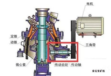 圆锥破碎机的传动形式是刚性连接,电动机通过弹性联轴器与齿轮轴进行刚性连接,当圆锥破碎机发生过铁或超负荷运行时,就很容易造成大小齿轮的损坏。