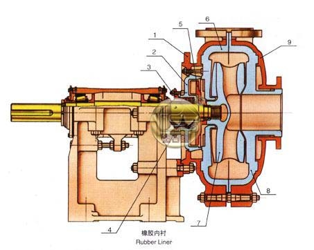 泵体内的部件可以根据输送不同矿浆性质的矿浆可提高铬合金材质、耐腐蚀橡胶材质、不锈钢材质。