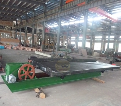 传动机构(含床头、电机);2、给矿槽;3、床面;4、给水槽;5、调坡机构(鞍型基座);五大部分组成。
